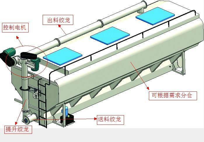 上裝罐體:罐體材質采用4mm優(yōu)質碳鋼板,整車3條絞龍,由3個5.5KW電機380V外接電源帶動頂部絞龍用液壓控制舉升,可左右旋轉180°。罐體內分為貳個倉,可以獨立控制各分倉卸料順序和速度。